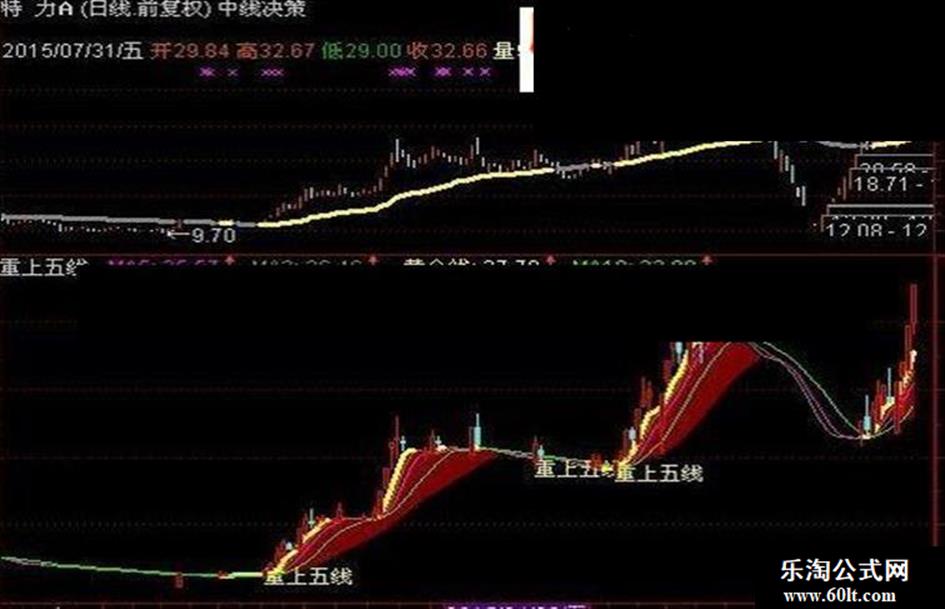 DRAWTEXT(CROSS(C,HJX) AND CROSS(C,MA5) AND CROSS(C,M20),L,'重上五线'),COLORYELLOW;
