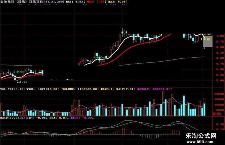 DRAWTEXT(FILTER(CROSS(JH,30),55),LOW*0.98,'↑关注'),COLORYELLOW,LINETHICK1;