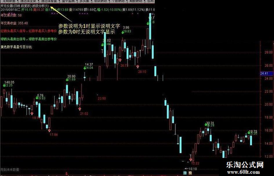 DRAWTEXT_FIX(说明=1,0.00,0.15,0,'绿箭头是卖出信号,绿数字是卖出参考价'),COLORGREEN;