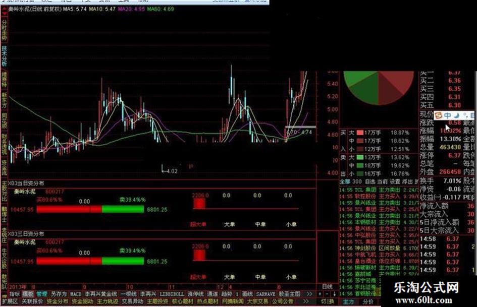 总流入比:=SUM((超B+大B+中B+小B),N)/SUM((超B+大B+中B+小B+超S+大S+中S+小S),N)*100,NODRAW;