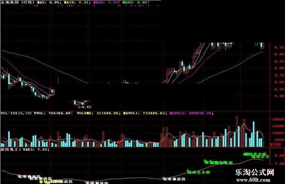 DRAWTEXT(CROSS(波段王,波段鬼) AND 波段王<40,LOW*1.01,'低吸做波段'), COLORWHITE;