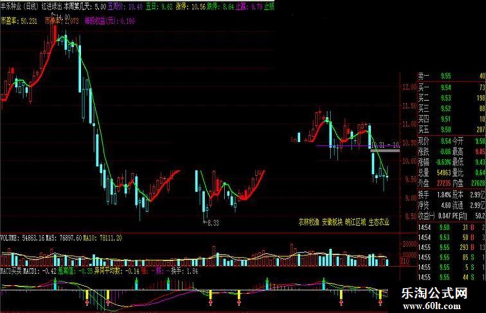 本主图指标由红色的上升线和绿色的下降线、红色的K线和青色的K线作为买卖提示组合,即红买绿卖。有图为证