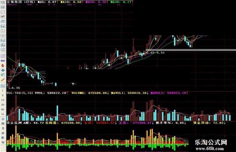预测量:STICKLINE(IF(DYNAINFO(7)=CLOSE AND DYNAINFO(10)=AMOUNT,VAR1,VAR2),VAR1,0,7,1),COLORGRAY;}