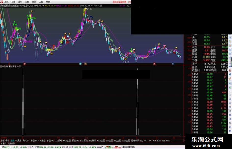 下面的信号点,全是用均线与摇摆指标相结合写出的买点。