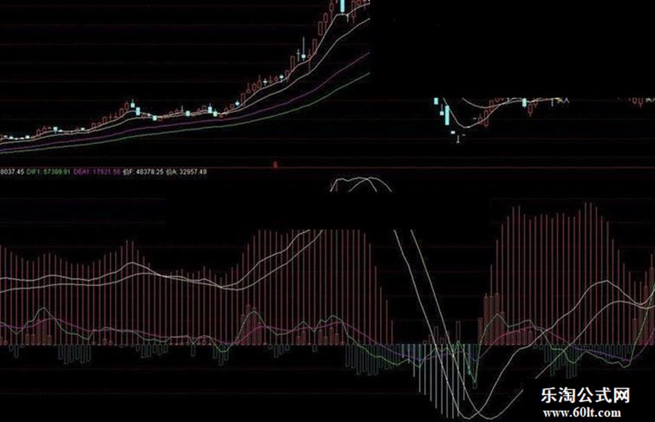 DIF:=EMA(CLOSE,12)-EMA(CLOSE,26); DEA:=EMA(DIF,9); MACD:=(DIF-DEA)*2,COLORSTICK; DIFL:=EMA(VOL,12)-EMA(VOL,26); DEAL:=EMA(DIFL,9); MACL:=(DIFL-DEAL)*2,COLORSTICK; 基点:=CONST(LLV(MACL,250)); 基:=CONST(HHV(MACL,250))-基点; STICKLINE(MACL>=0,0,MACL,2,-1),COLORLIRED; STICKLINE(MACL<=0,0,MACL,2,-1),COLORLIBLUE; 分:=CONST(LLV(MACD,250)); 百:=CONST(HHV(MACD,250))-分; C比:=(MACD-分)/百; 价柱:C比*基+基点,COLORSTICK; DIF1:DIFL,COLORGREEN; DEA1:DEAL,COLORMAGENTA; 分1:=CONST(LLV(DIF,250)); 百1:=CONST(HHV(DIF,250))-分1; C比1:=(DIF-分1)/百1; 价F:C比1*基+基点,COLORWHITE,LINETHICK1; 分2:=CONST(LLV(DEA,250)); 百2:=CONST(HHV(DEA,250))-分2; C比2:=(DEA-分2)/百2; 价A:C比2*基+基点,COLORYELLOW,LINETHICK1; {攻击波} HS:=V/CAPITAL*100; 十日换手:=SUM(HS,10)>15; 攻击波:=(DYNAINFO(7)-L>0.3 AND DYNAINFO(17)>3 AND HS>2 AND 十日换手); STICKLINE(攻击波,0,MACL/2,1,0),COLORMAGENTA; 强势出关:=COUNT("KDJ.J"<0,4)>=3 AND 100*(WINNER(C)-WINNER(O))>15; STICKLINE(强势出关,0,MACL/0.75,1,0),COLORYELLOW;