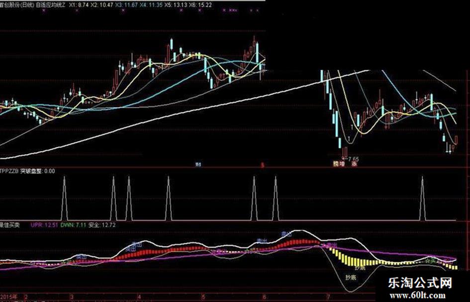 OPEN>REF(CLOSE,1),1,0),LOW*0.98,'买进') ,COLORYELLOW;