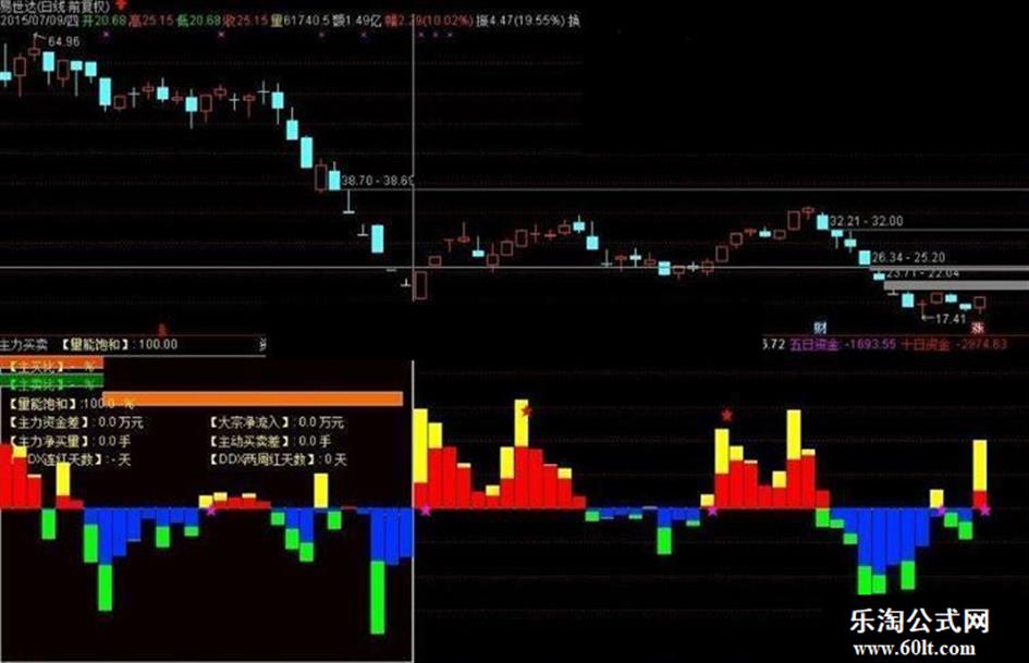 资金流出:=IF((HSL*0.4+LLJX)<0,(HSL*0.4+LLJX),DRAWNULL),COLOR00FF00;