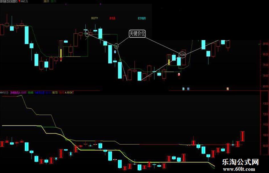 IF(突破获支撑 AND K2=1,突破获支撑,DRAWNULL),COLORYELLOW;
