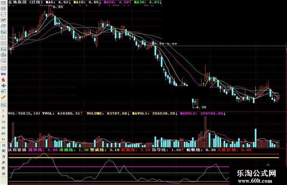 指导线:EMA((C-V1)/(V2-V1)*4,4);