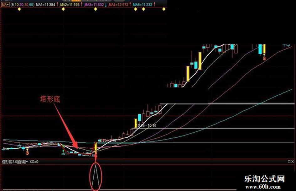 分享一个通达信和益盟操盘手的副图指标:塔形底指标。一般来说,股价在低位形成塔形底后,如若有量配合,往往会有一段较大的涨势出现,因此,投资者见此图形应抓准机会,跟进做多。因其形状像个倒扣的塔顶,故命名为塔形底。塔形底在MA中有时比较像钢筋锅,所以也叫钢筋锅指标。