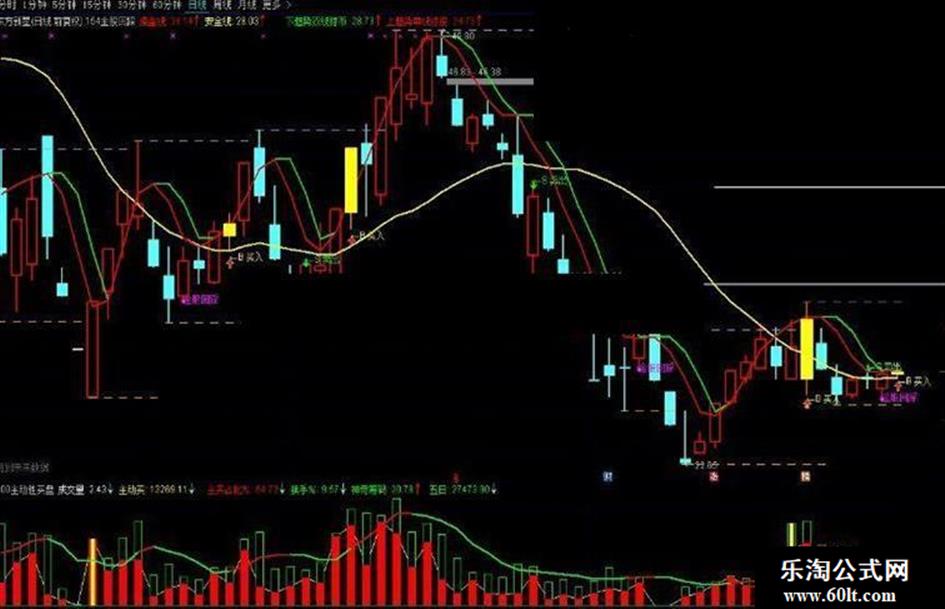 DRAWTEXT(CROSS(操盘线,安全线),L*0.99,'←B 买入'),COLOR00FFFF;