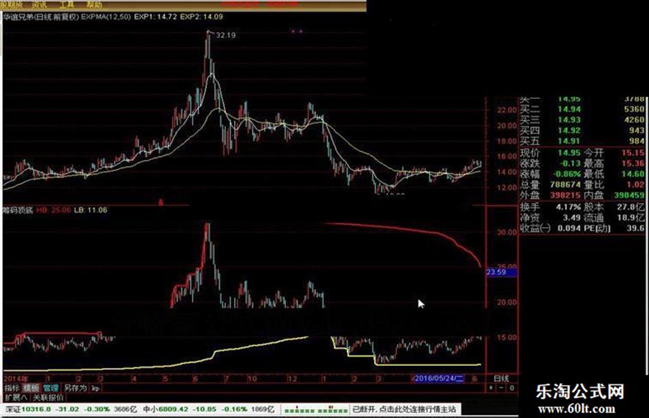 无意间鼓捣出来的,很简单,能明确显示股价的顶部和底部,红线是顶,黄线是底。有些特殊情况,极端行情,大家注意就行了。觉得还很有利用价值,和伙计们分享分享,没有加密,伙计们可以查看和发挥。在此声明: