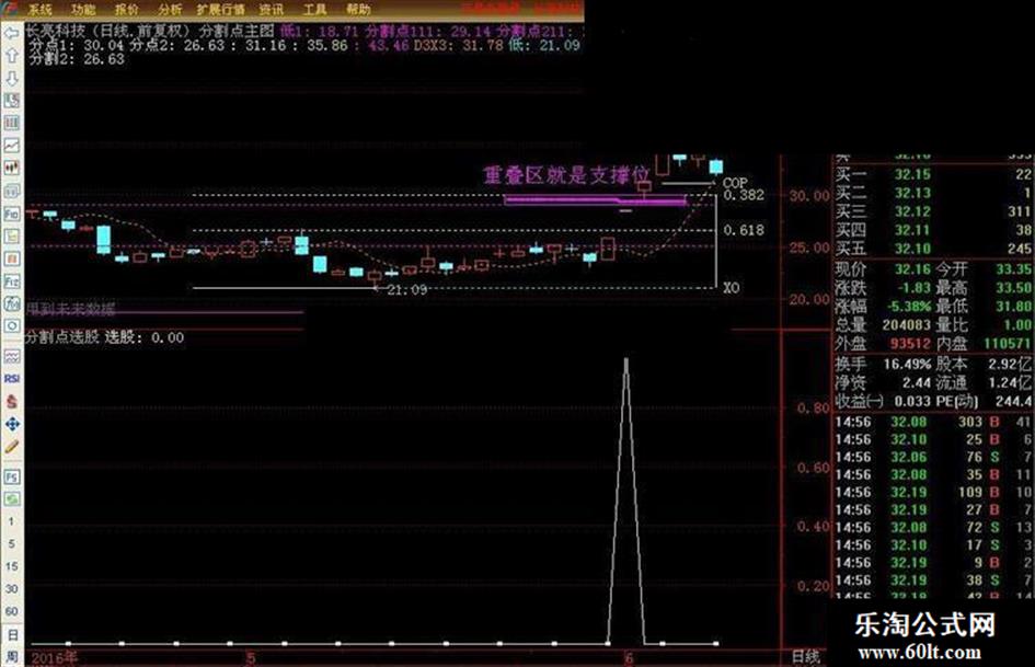 分割点2:=IF(CURRBARSCOUNT<=30,高-(高-低)*0.618,DRAWNULL),COLORWHITE,DOTLINE;