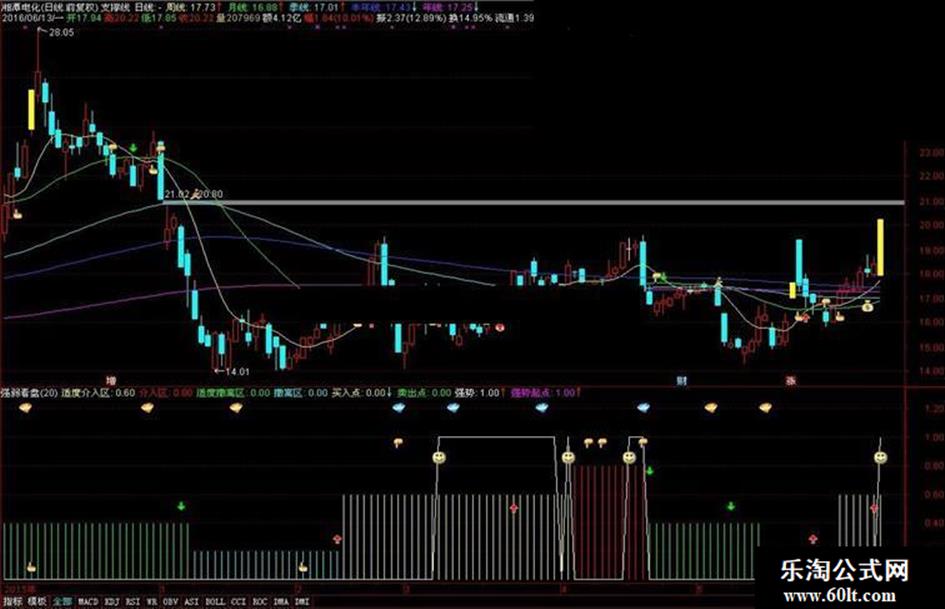 4.买入信号:在个股强弱下行阶段,如涨势、涨幅先后上拐,会出现上指买入信号。如涨幅上穿个股强弱或0轴,会分别出现低位或高位红箭买入信号。