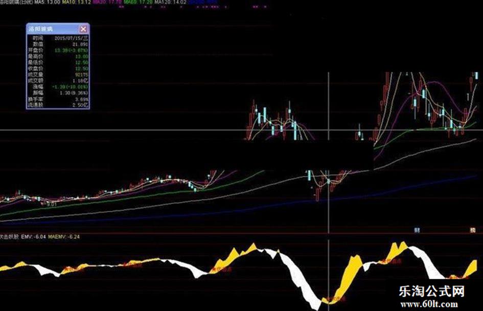妖股: DRAWTEXT(REF(CROSS(EMV,MAEMV),1) AND EMV>1.5*MAEMV,EMV,'★伏击点'),COLORRED;