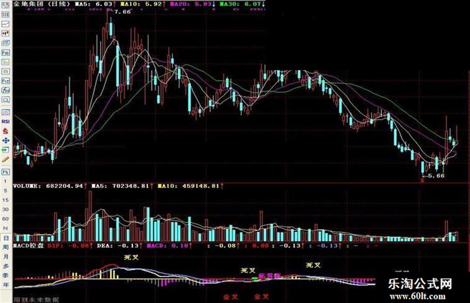 DRAWTEXT(CROSS(DEA,DIF),DIF+0.3,'死叉'),COLORYELLOW;