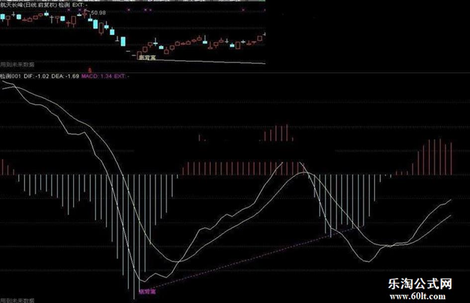 DRAWTEXT(CROSS(EXT!=DRAWNULL,0.5),MACD,'底背离'),COLORMAGENTA;