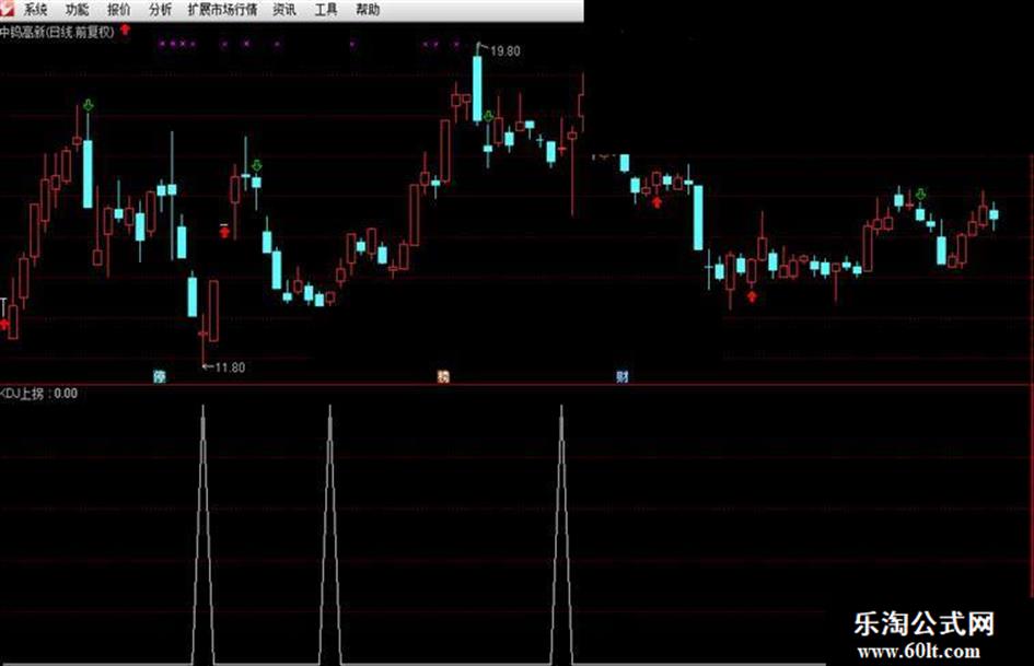 指标的原理是KDJ的J值在低位拐头向上 从而发出进场 介入信号