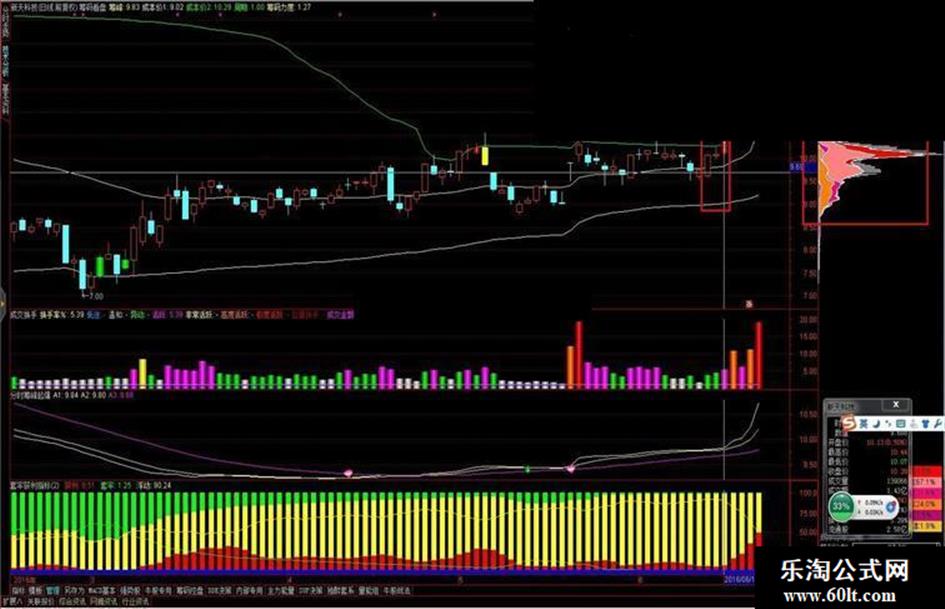 第一次发帖,本人钟爱研究筹码,感觉受益匪浅,对前辈们发的筹码指标也特别感兴趣,所以特意把前辈的这两个筹码指标,修改结合了自己的想法做了一个筹码主图,有喜欢和我一样研究筹码的朋友拿去参考,愿各位都能体会自己的一番心得,