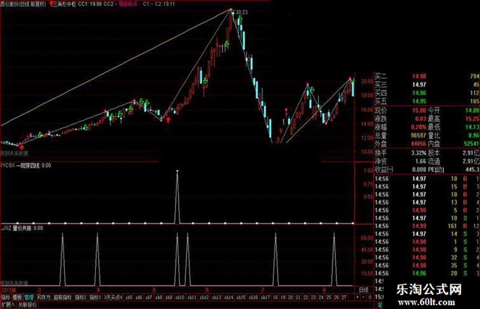 通达信量价共振+一阳穿四线(源码选股/副图 贴图}