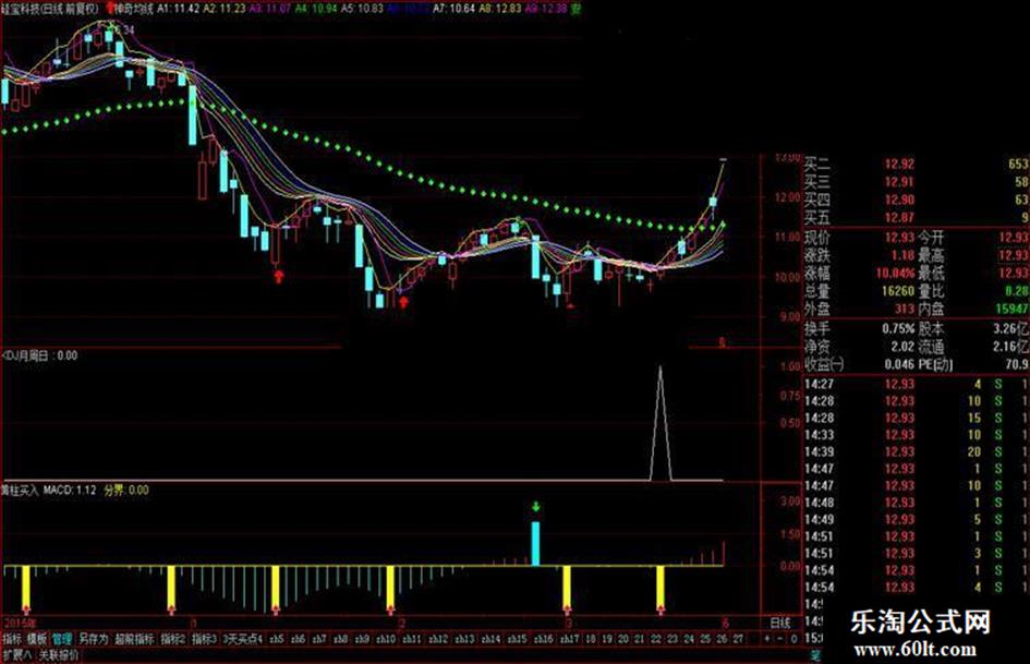通达信KDJ月周日共振选股和黄柱买入指标副图源码贴图
