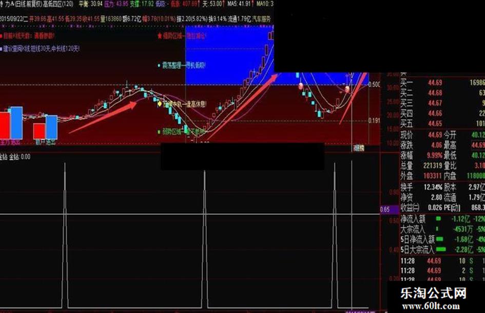 金钻:吸筹下 AND 趋势线上 AND CROSS(趋势线,吸筹);