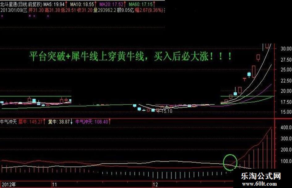 这款牛气冲天指标是本人使用多年的一个抓牛股的强大指标,此指标不像很多黑马指标一样马后炮,等出了大阳或是涨停才出信号,严重滞后,此指标信号具有前瞻性,能在牛股大涨前预先给出指示。