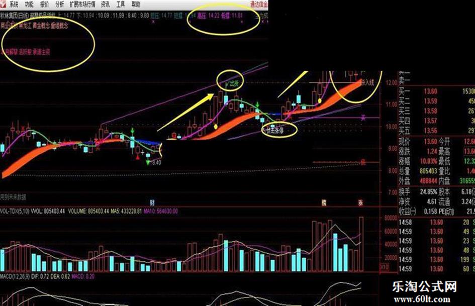 此款不含有未来函数,可以运用于任何股票软件上面,准确率高达80%以上 (行情好涨的幅度更高)