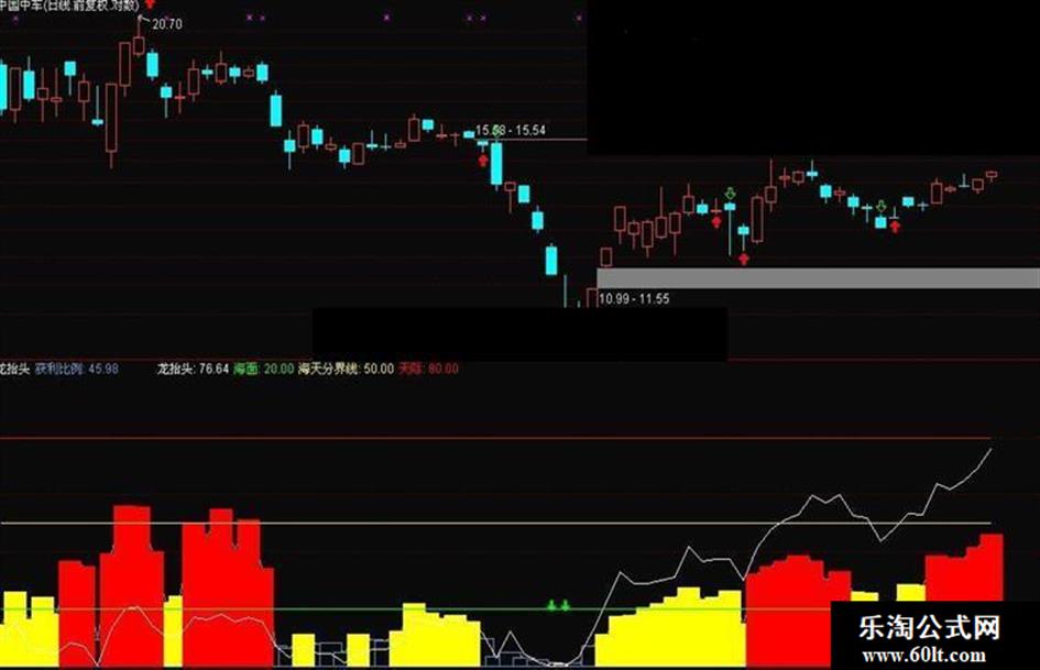 STICKLINE(获利比例>=30 AND 获利比例<80,0,获利比例,6,0),COLORRED;
