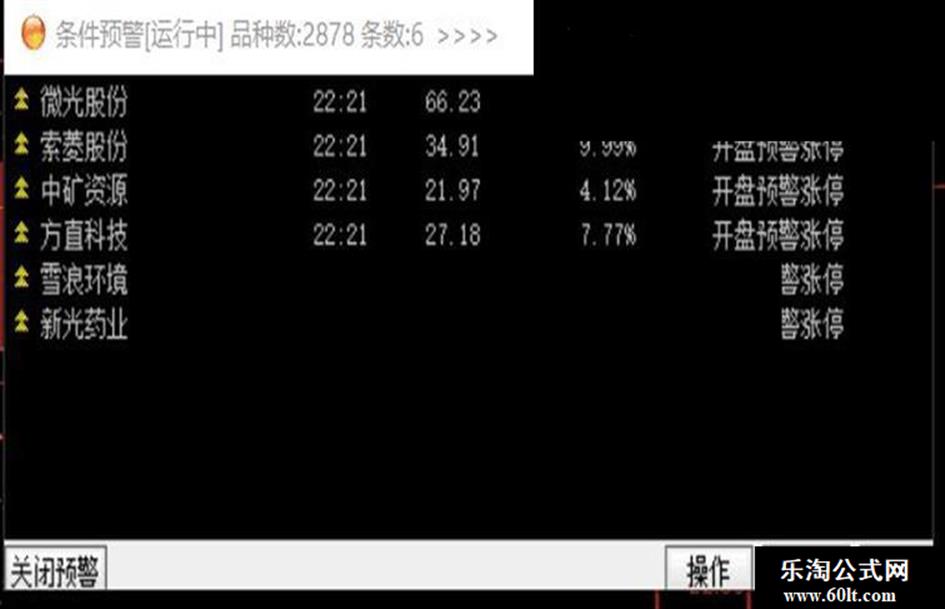 指标一:那就是我们的选股指标,选股是我们炒股的第一步也是我们最关键的一步,选出股的好坏关系我们的收益多少!这个指标是根据集合竞价时候(9点25-9点30分)这5分钟时间根据换手率,总量,量比,资金等方面进行筛选出关注度高活跃的牛股,一般都能当天抓到涨停股非常实用!满足条件的个股会指导弹出提示(注意:只选择早上9点25分-9点30分这五分钟提示的票)如图: