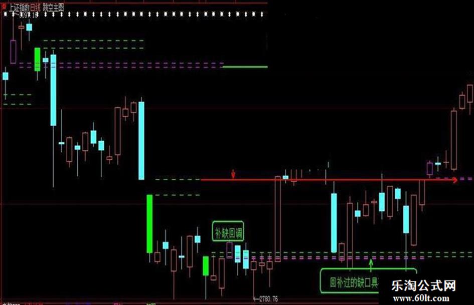 跳空,是衡量强弱和压力支撑的判断形态。向上跳空,自然是强势;向下跳空,自然是弱势;回补下缺后,逢高就是减持位置;调整到上缺,自然有支撑;回补过的缺口具备支撑作用;没有回补的上方缺口具备压力作用。这些缺口都具有很好的参考作用,无论对于大盘和个股同样具备参考判断作用,这就是《跳空主图》的作用。