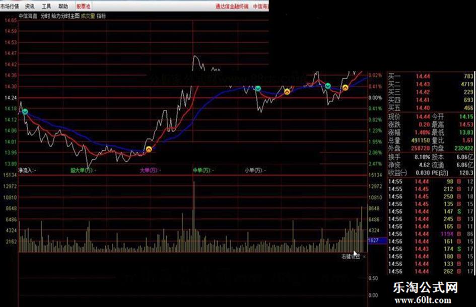 乾坤线:EXPMA(EXPMA(CLOSE,50),1),LINETHICK2,COLORBLUE;