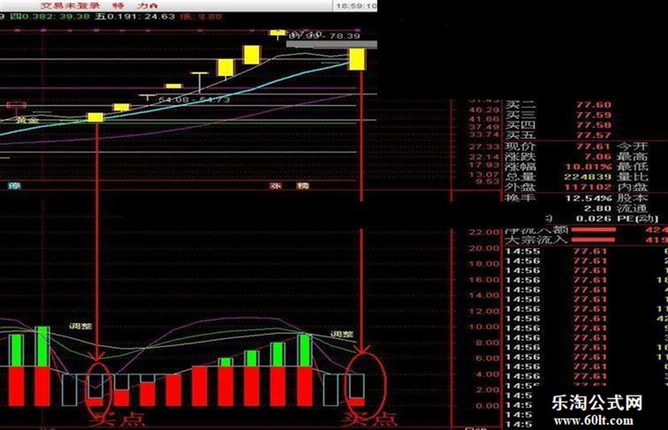 DRAWTEXT(REF(火,3)>0 AND REF(火,2)>0 AND REF(火,1)>0 AND 火=0 AND REF(火,1)>山,REF(火,1),'调整'),COLORYELLOW , ;