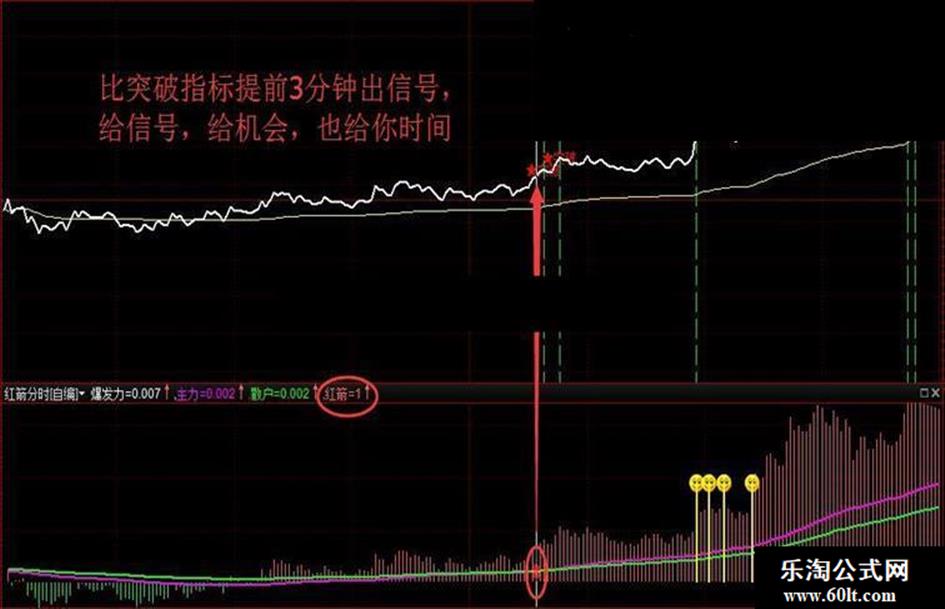 红箭分时 是益盟操盘手分时副图指标,主力线上穿散户线,出现红箭头和红箭=1信号,买入。