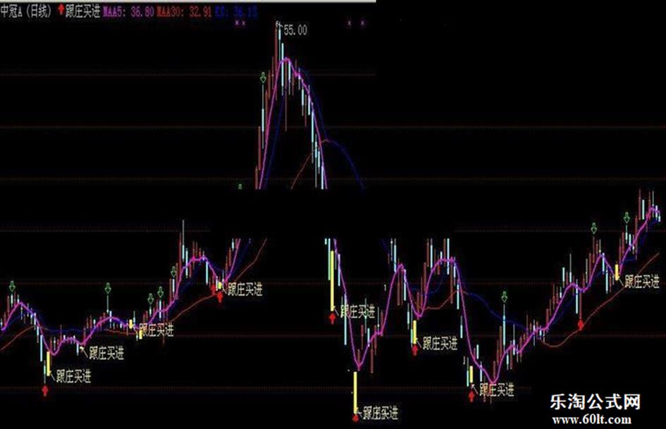 DRAWTEXT(FILTER(买=1,5),LOW-0.05,'↖跟庄买进'),COLORYELLOW;