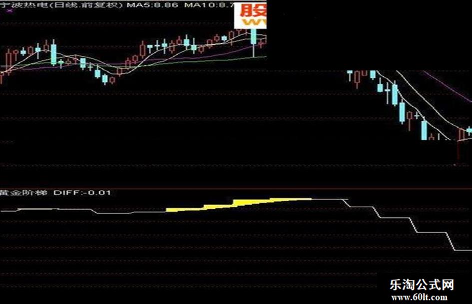 黄金阶梯:STICKLINE(DEAA>REF(DEAA,1) AND DIFF>DEAA,DIFF,DEAA,5,0),COLORYELLOW;
