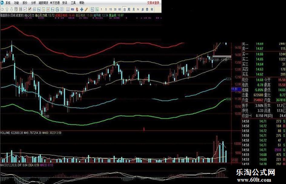 指标共五根线,中间的黄线是地心引力线,上边两根高压线和超高压线,下边两根地平线和黄金线。 一般情况下股价会在地平线和高压线之间震荡,突破高压线,上面是强压区,要注意高抛,若连续三天站稳最上面的超高压线,有走妖希望。股价连续三天运行在下面的黄金线,抄底良机。 具体使用,还要自己体会。