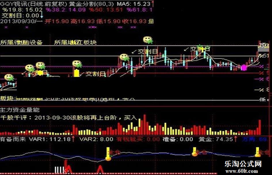 有钱就买: IF(CROSS(VAR1,VAR2),50,0),STICK,COLOR0000CC,LINETHICK4;