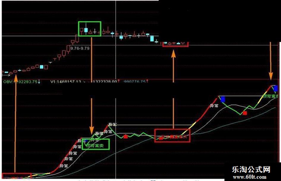 DRAWTEXT((((ABS((OBV - REF(OBV,1))) / ABS(MA(OBV,5))) > 0.07) AND (OBV > REF(OBV,1))),OBV,'异常');