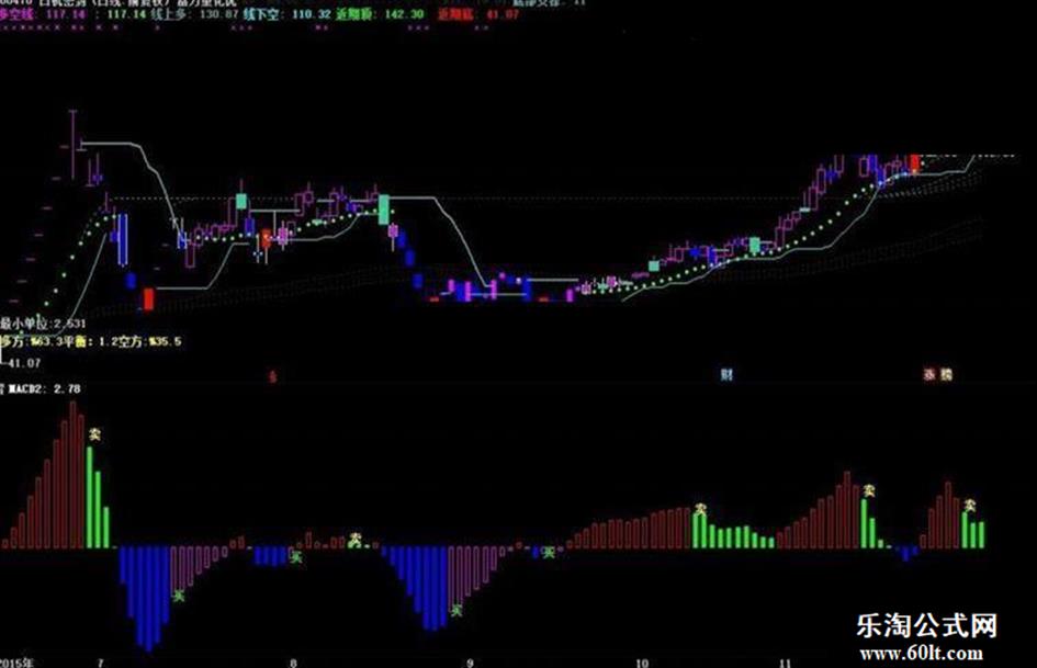 绿:STICKLINE(MACD1<MACD2 AND MACD1>0,0,MACD1,1,0),COLORGREEN;