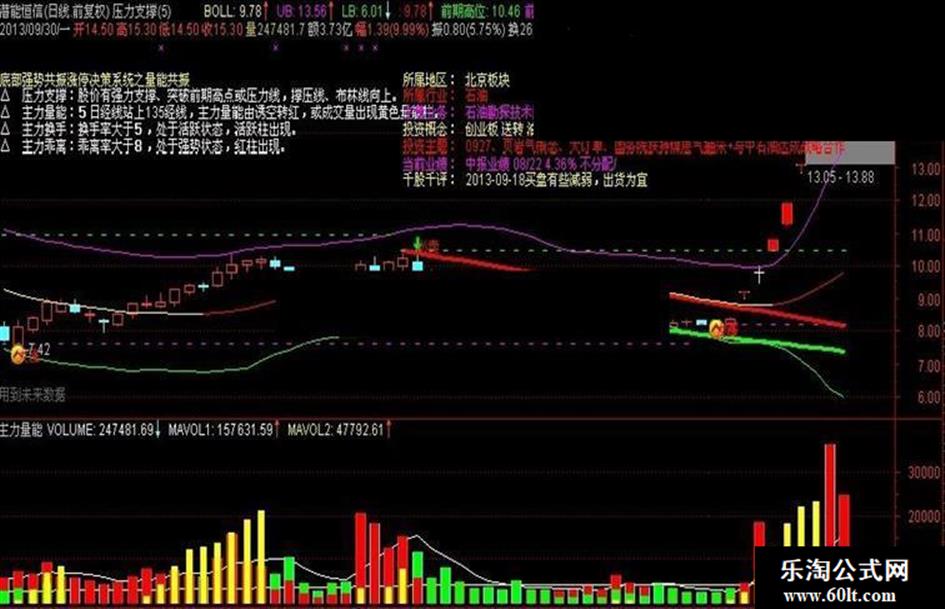 3、当成交量中第一次出现黄色量能柱时为买入点, 黄色量能柱持续期间持股。当成交量中第一次失去黄色量能柱时为卖出点, 无黄色量能柱期间空仓。
