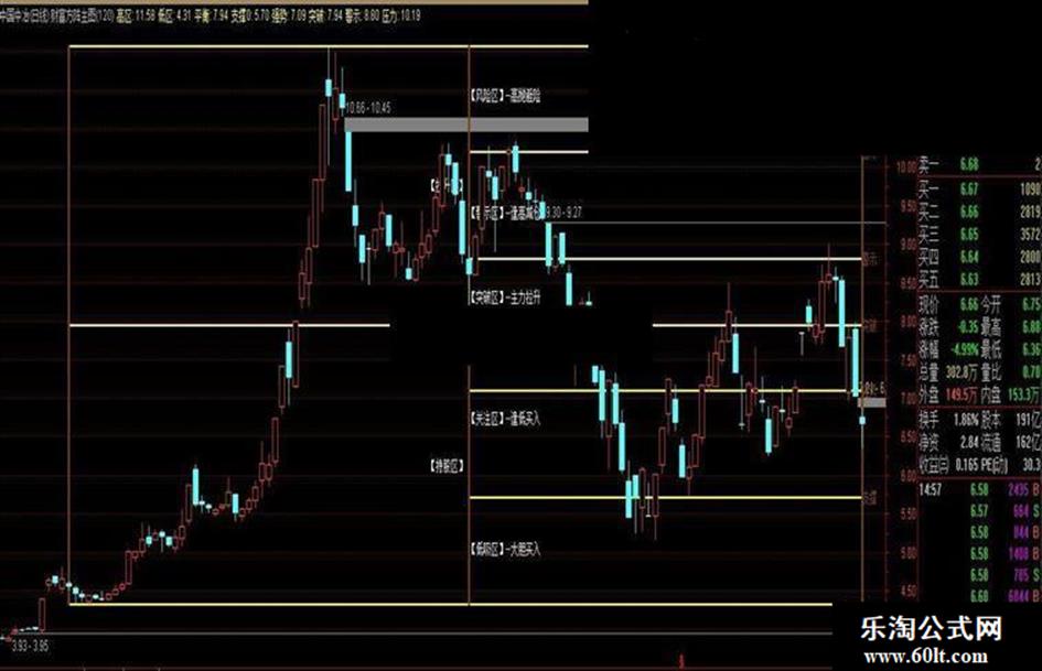 DRAWTEXT(CURRBARSCOUNT=N/4+30,GD-KJ*0.45,'【突破区】--主力拉升'),COLORWHITE;
