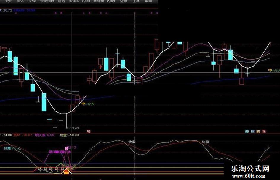 DRAWTEXT(CROSS(凤D,凤K)AND 凤K>78,100,'快卖');