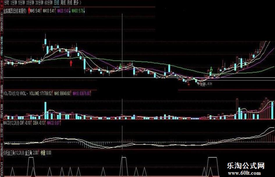 通达信根据@自由做自己老师指标改的:金三角(源码副图贴图)