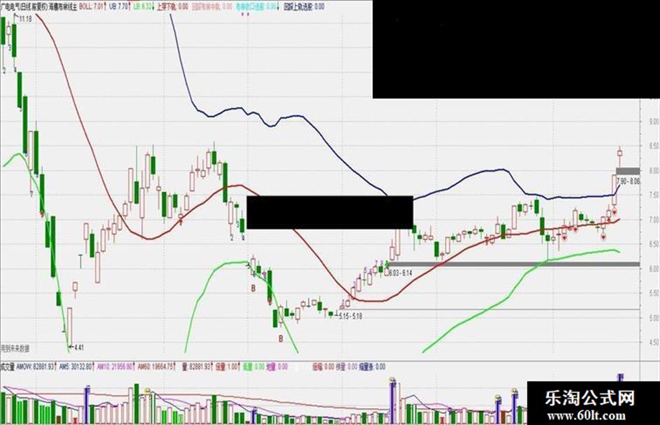 上穿轨道:=CROSS(C,BOLL) OR CROSS(C,UB);