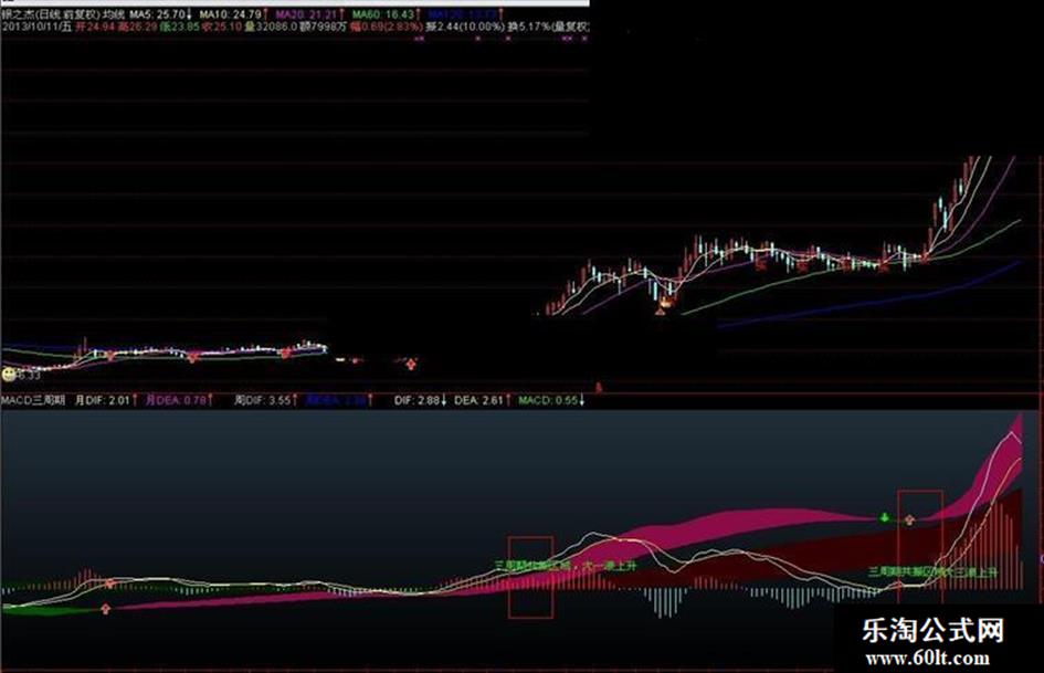 本指标是本人原创,所以加密,引用源码楼下已经贴出,很简单,就是引用系统的macd把三个周期在日线图显示出来,对于做中长线的人来说看起来很清晰你的股票处于什么阶段,有人怀疑有未来函数,这个和本指标没有关系,和周期有关系,一个周期没有收盘完成那么他的数值一定是变化的,指标也肯定是变化的,因为指标来自于数值。但是他可以让你看清一个大方向吧,你选股的时候总要看看周月这些大周期吧