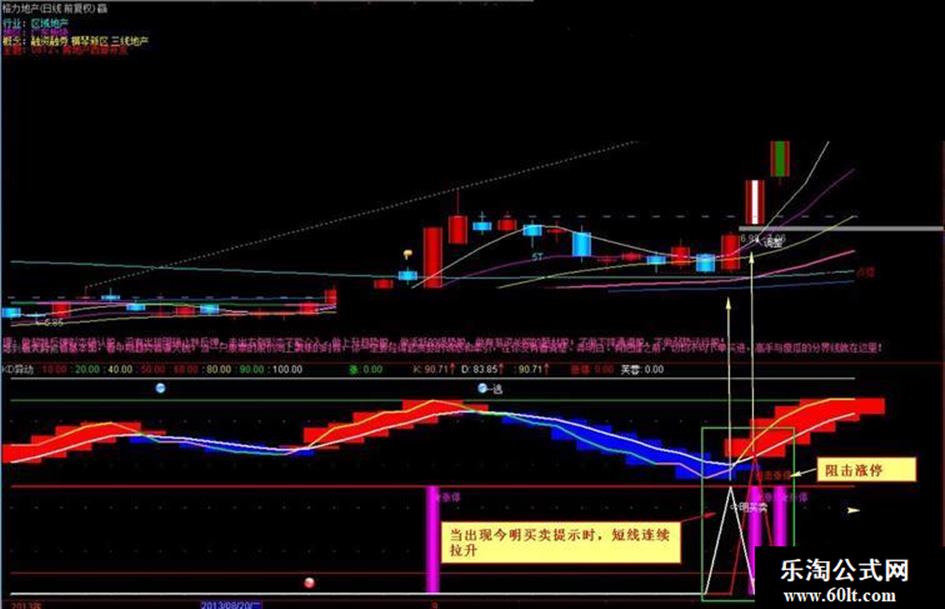 说明:只有经过长期实践和在牛、熊市中经得起时间考验的指标才是好指标,该指标无未来函数,通过K、D两条线的走势精确判断顶、底。各种买入指标的精准提示,可以成功率极高的抓到启动初期大牛股。公式简单实用,配合K线的形态和成交量一起使用会起到事半功倍的效果,此指标可能有些坛友们在我以前发其它指标的贴图中看到过,但是始终未发,指标中的各种提示还需坛友们结合下面图中的简单解释,在今后的操作使用中慢慢揣摩,必有收获