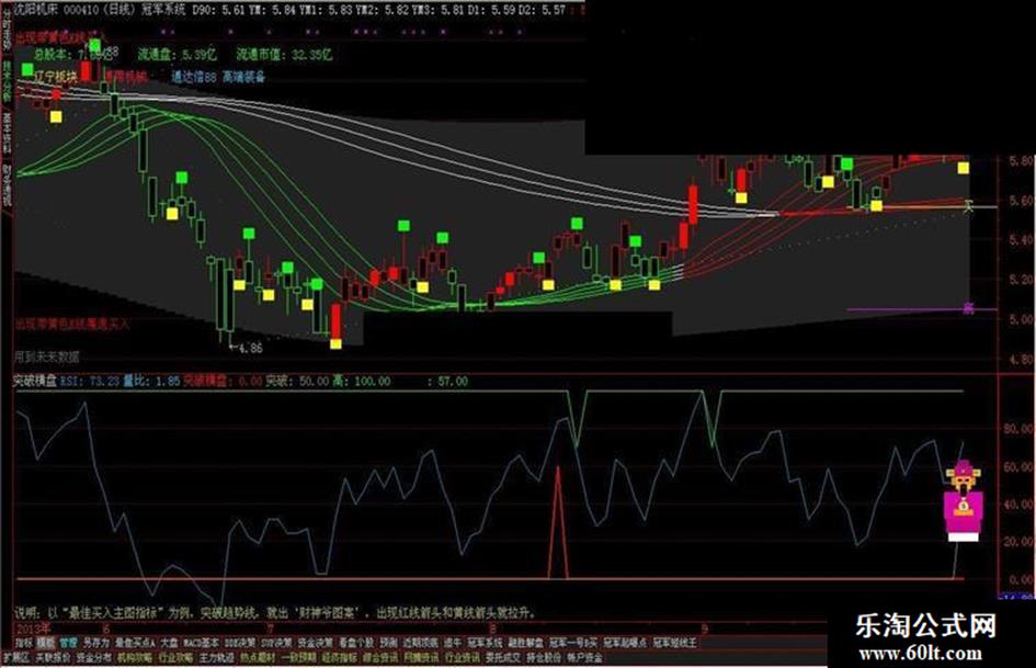 突破横盘:IF(FILTER(YY,5) AND YY=1,60,0),LINETHICK2,COLOR0000FF;