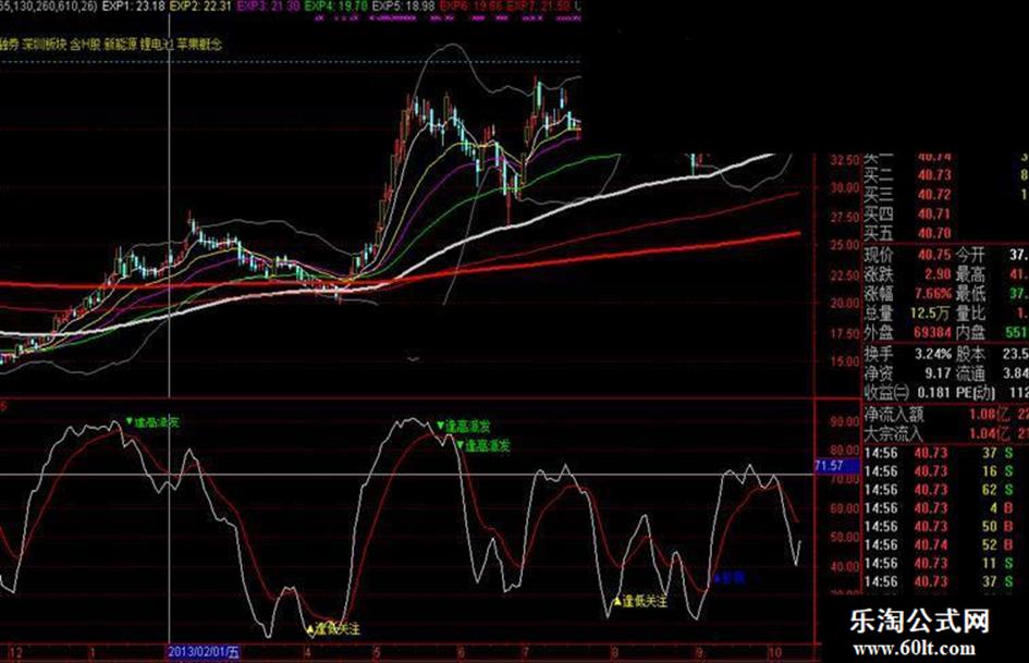▲逢低关注: DRAWTEXT(REF(CROSS(中期趋势,短期趋势),82) AND 中期趋势>1.3*短期趋势,短期趋势,'▲逢低关注'), COLOR00FFFF, LINETHICK1;