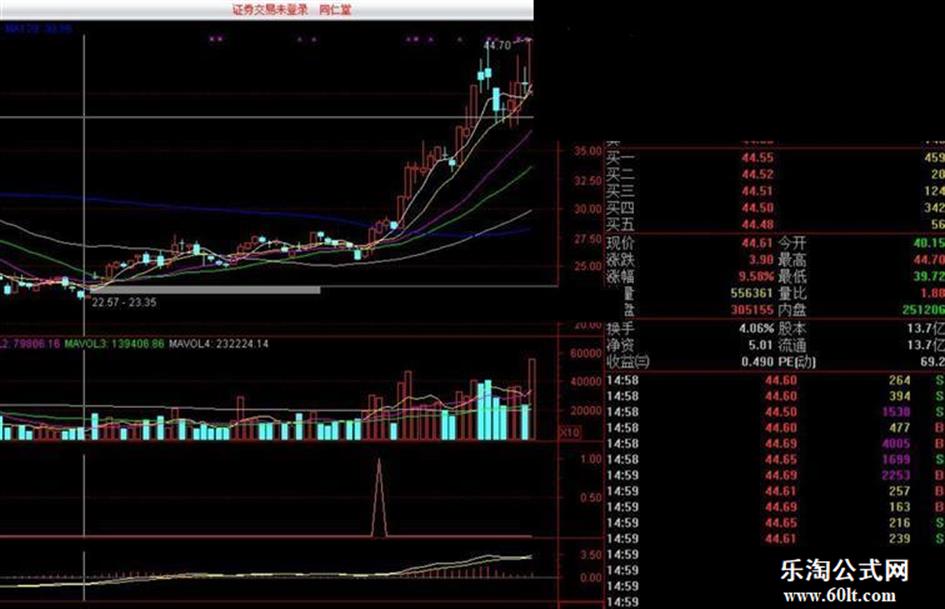 真龙出世:=A4 AND CROSS(C,A1) AND A2 AND C<HHV(H,60) AND MACD>0 AND DIF>0 AND DEA>0 AND DIF>DEA*1.01 AND A3;